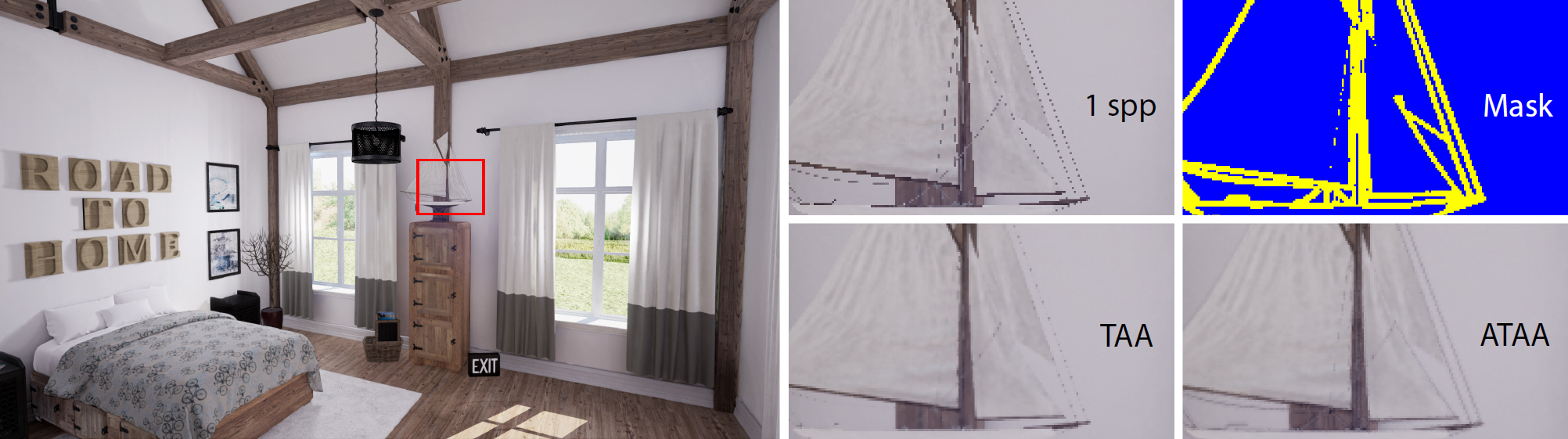 We introduce a pragmatic algorithm for real-time adaptive super-sampling in games. It extends temporal antialiasing of rasterized images with adaptive ray tracing, and conforms to the constraints of a commercial game engine and today’s GPU ray tracing APIs. The algorithm removes blurring and ghosting artifacts associated with standard temporal antialiasing and achieves quality approaching 16x supersampling of geometry, shading, and materials while staying within the 33ms frame budget required of most games.